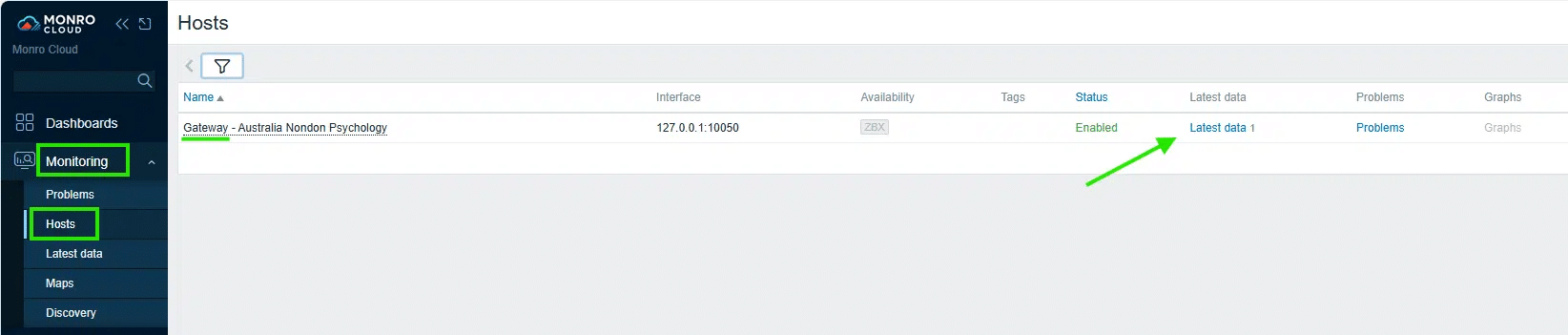 • From within the Monro Cloud Monitoring Dashboard, click Monitoring.
