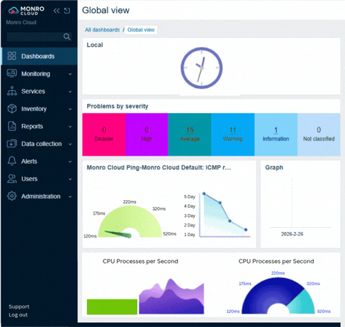 The solution is completely cloud hosted and you will not require any infrastructure of your own unless you wish to use a proxy to monitor internal networking equipment.